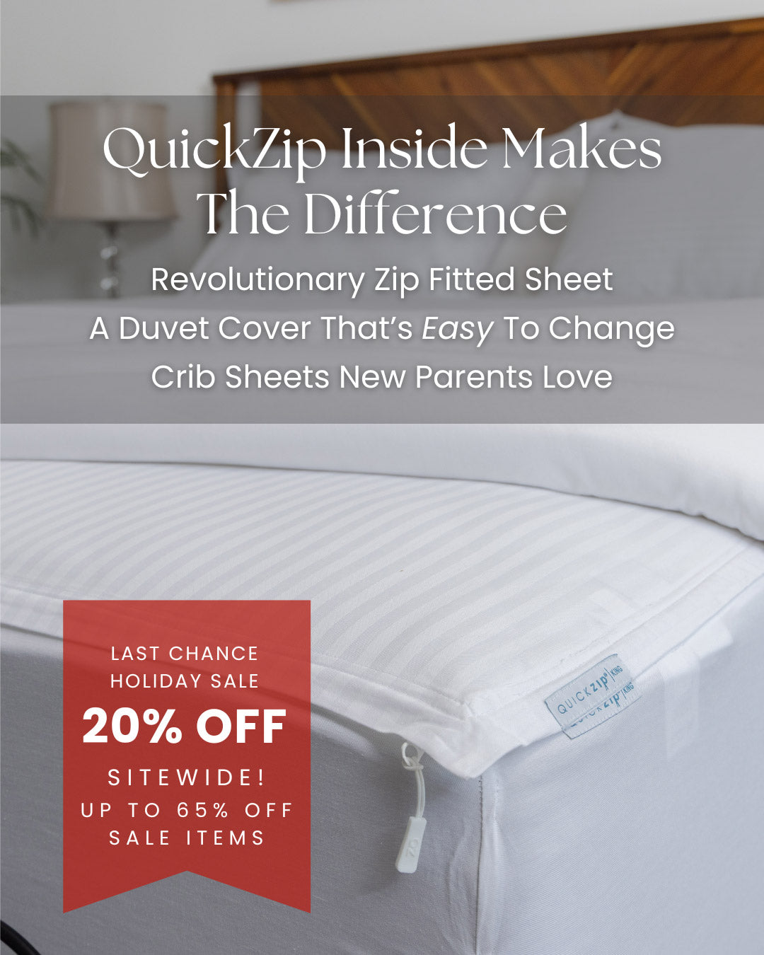 The 2-piece zipper design makes for fast & easy changing. Simply zip the top part of the fitted sheet (the "Zip Sheet") on and off while leaving the bottom part (the "Base") on the mattress. Once the Base is on, the interchangeable Zip Sheets allow easy changes to a fresh new fabric, color, or pattern!
