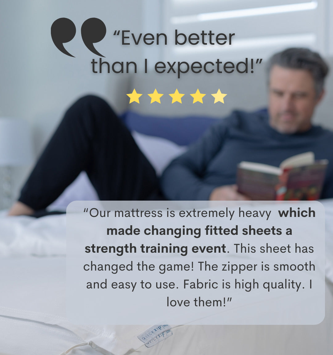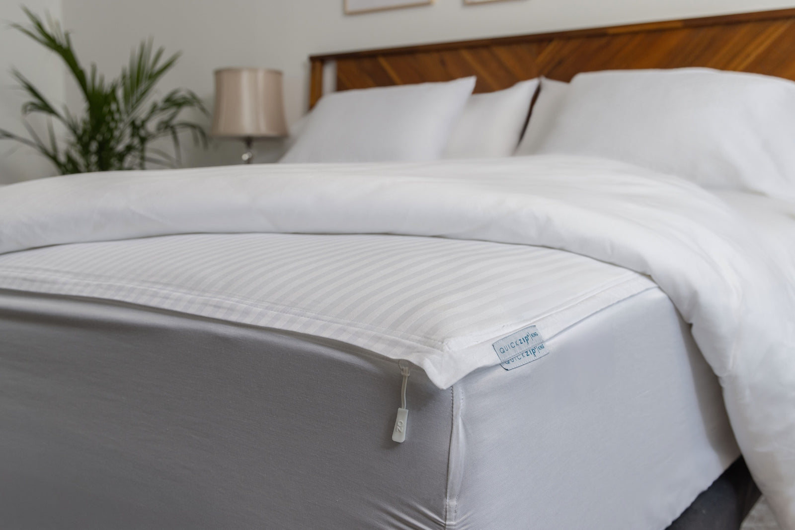QuickZip bedding fits standard US mattress sizes Crib through California King (plus special RV and Flex Top sizes). The fitted sheets have vertical elastic in the corners so they'll flex to fit a wide range of mattress thicknesses (AKA “drop” or “pocket”), and shapes (including many rounded corners).